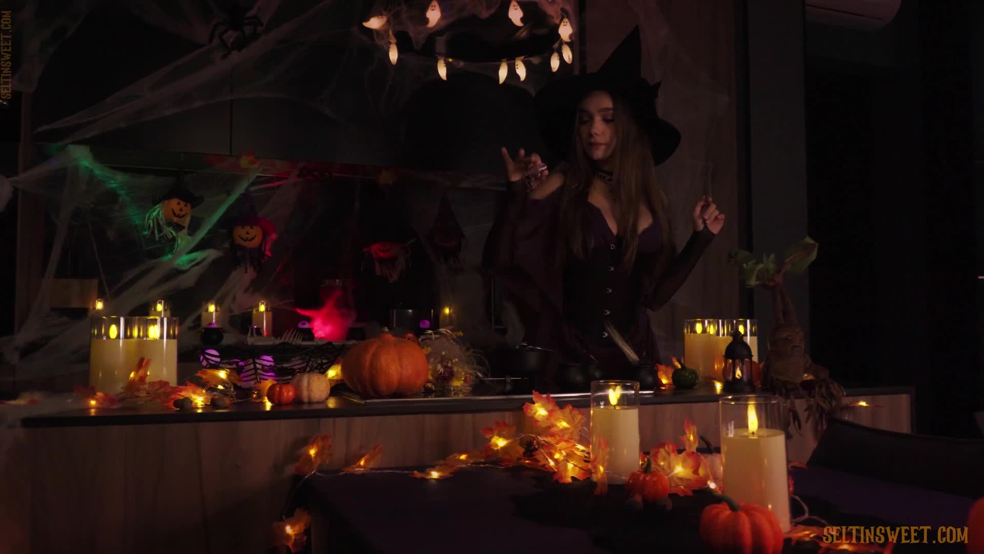 Скоро любимый многим праздник Хэллоуин, он будет 31 октября 2025 года. А в канун праздника предлагаем посмотреть тематическое порно. Девушка в праздничном наряде и в украшенной комнате ублажает себя на Хэллоуин.