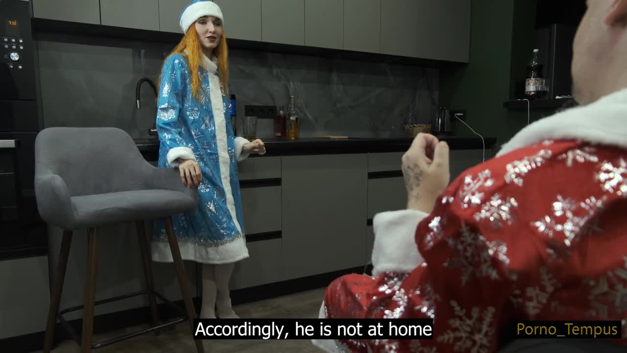 Мужик и баба, переодетые в Деда Мороза и Снегурочку, возвращались с рабочего дня. По всей видимости, они играли на утреннике. Мужик провел бабу до квартиры и так вышло, что зашел к ней в гости. Дальше случился банальный сценарий: они выпили и потрахались. Выходит, что Дед Мороз трахнул Снегурочку.