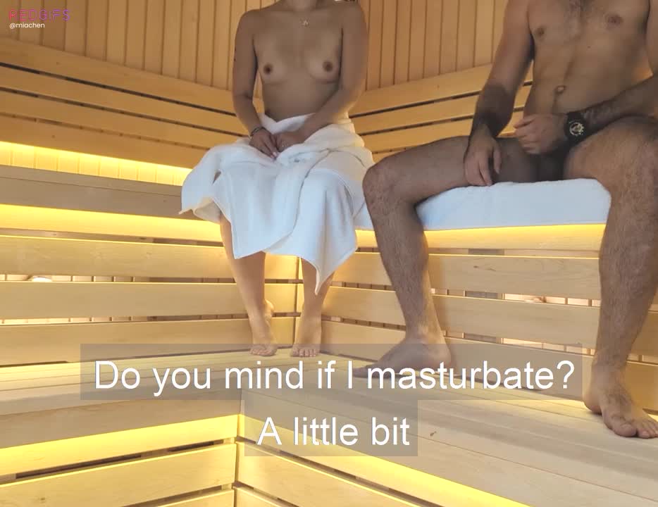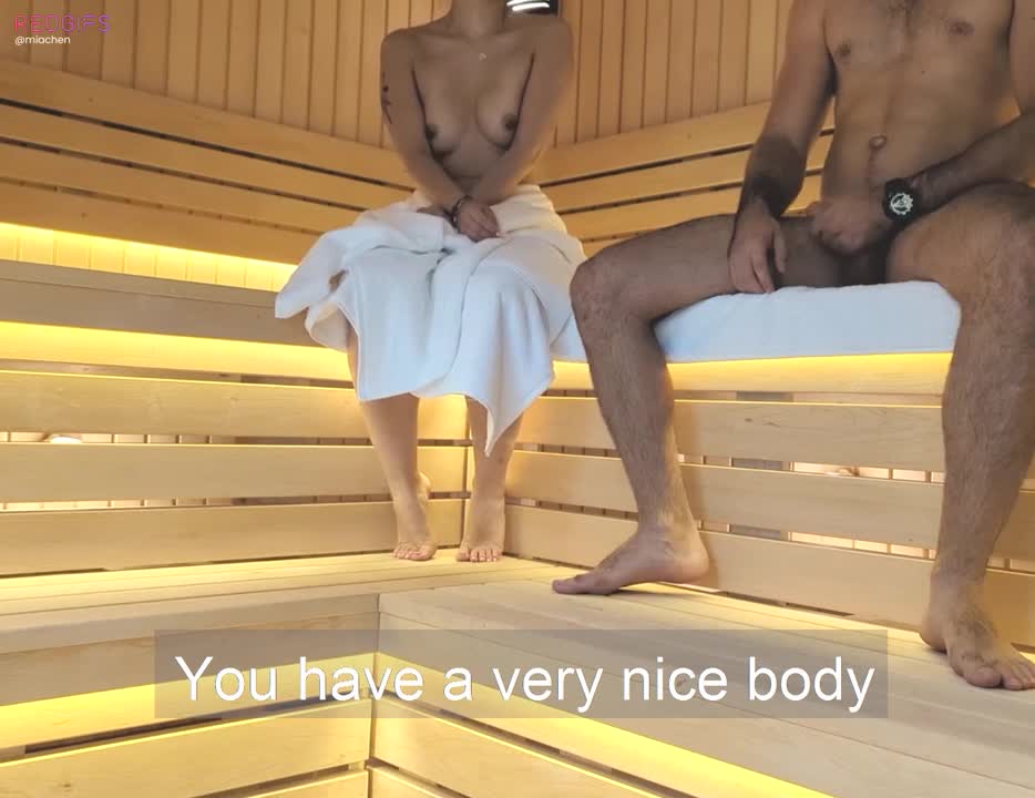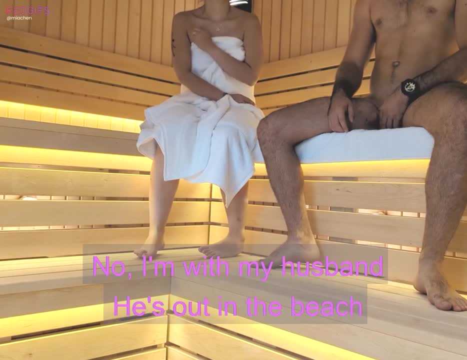 После этого диалога они начинают дрочить друг другу и трахаться. Такая вот измена мужу в сауне. Нехер лазить по пляжу.