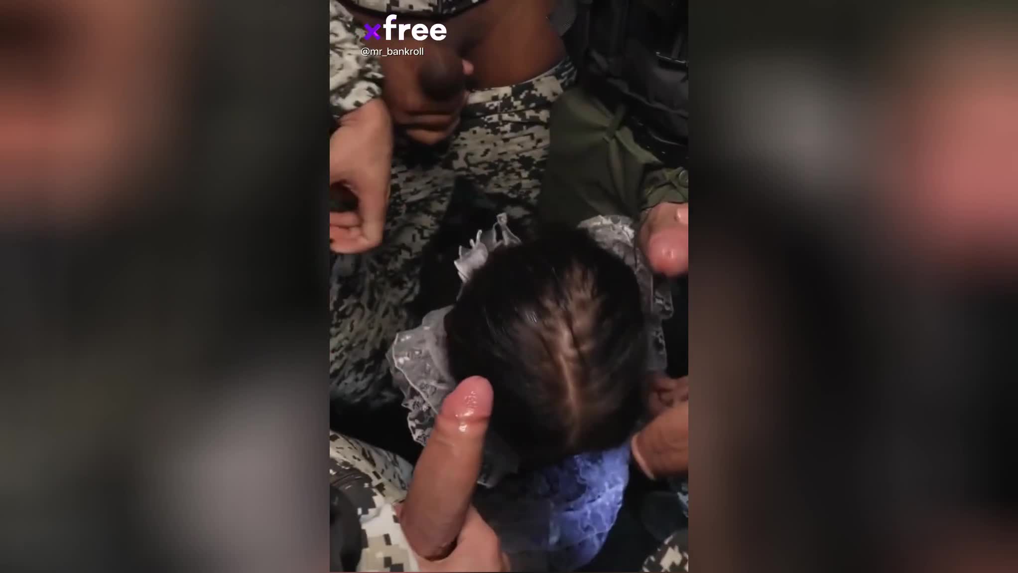 Толпа мужиков нахватила где-то девушку в школьной форме. Зачем она в нее нарядилась? Ведь видно, что она далеко не школьница. В таком виде ее толпа пустила по кругу, давая в рот.