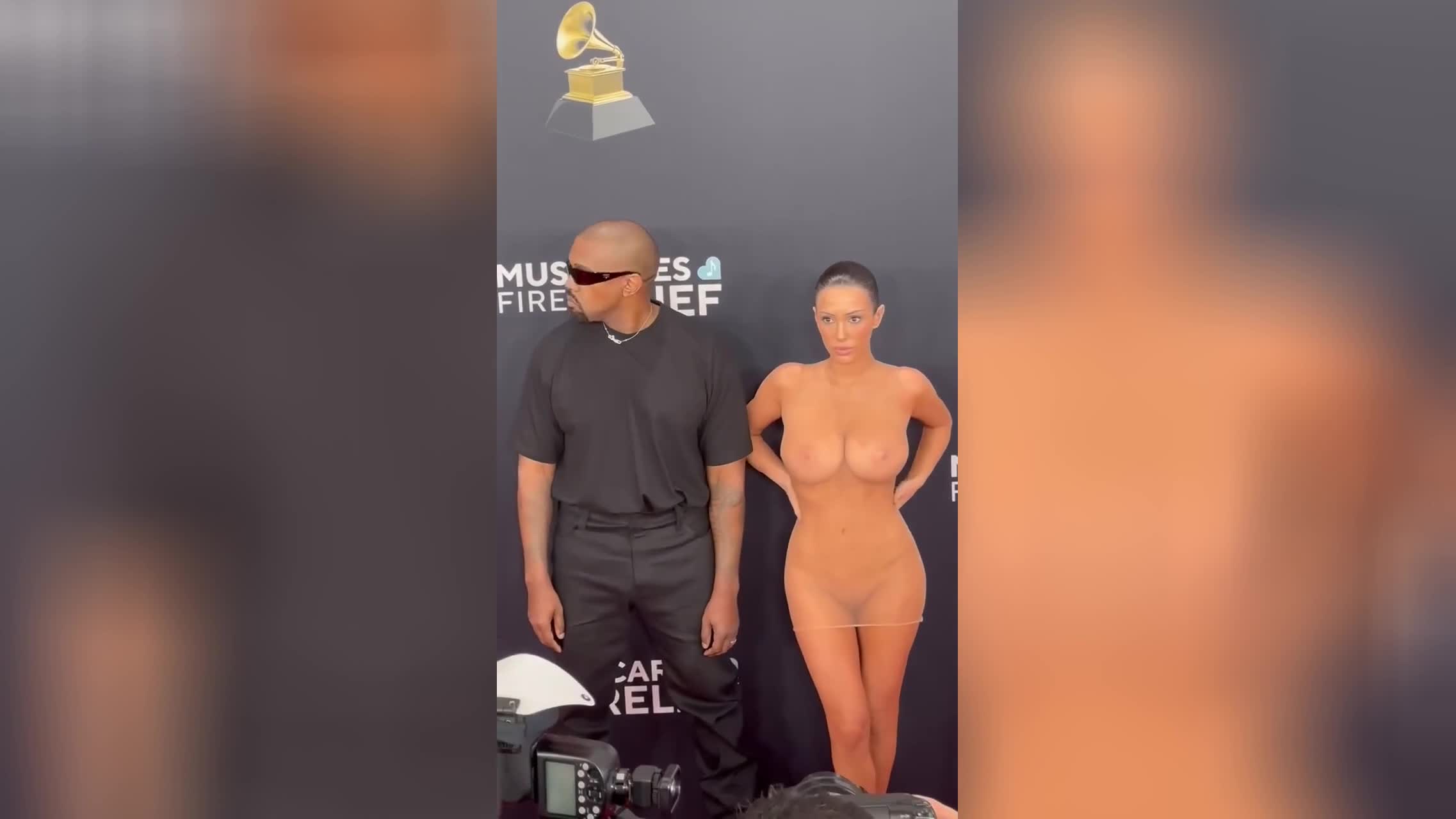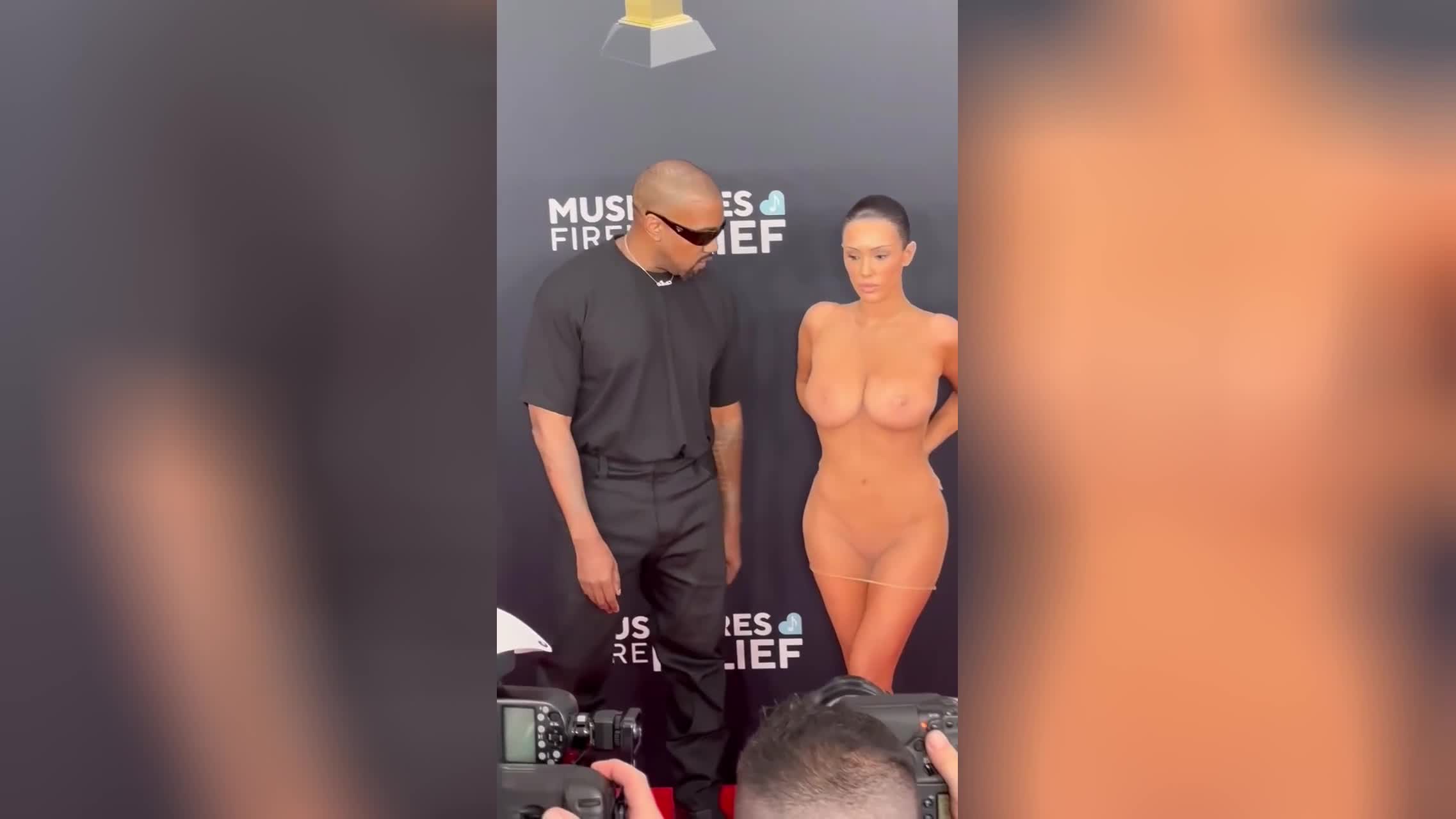 Рэпер Канье Уэст привел на премию Грэмми 2025 свою жену в полностью прозрачном платье. Так, что все смогли рассмотреть самые ее интимные места. На ней была шуба, которую она скинула, оставшись, по существу, голой. Предлагаем вашему вниманию видео без цензуры.