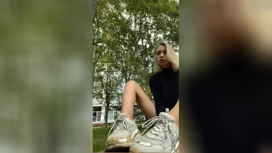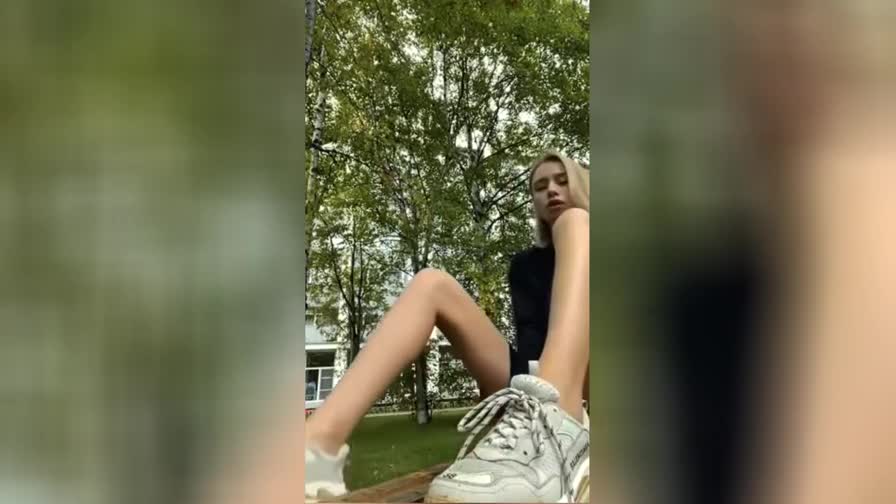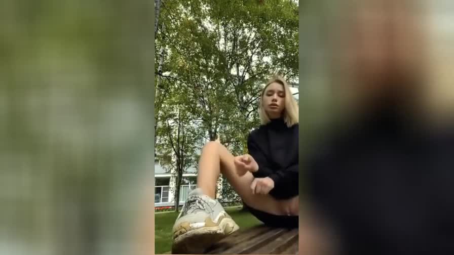 Начинающая молодая эксгибионистка решила начать записывать свой контент. Они с оператором приметили лавочку во дворе, на которую она села и, раздвинув ножки, показала свою пизду.
