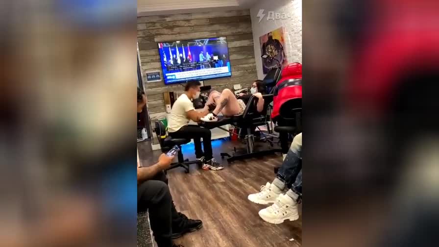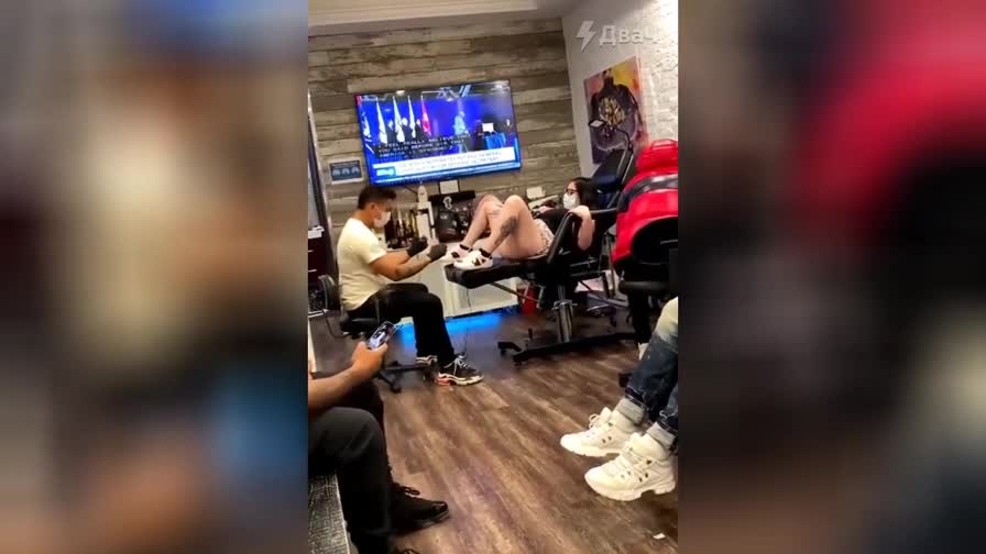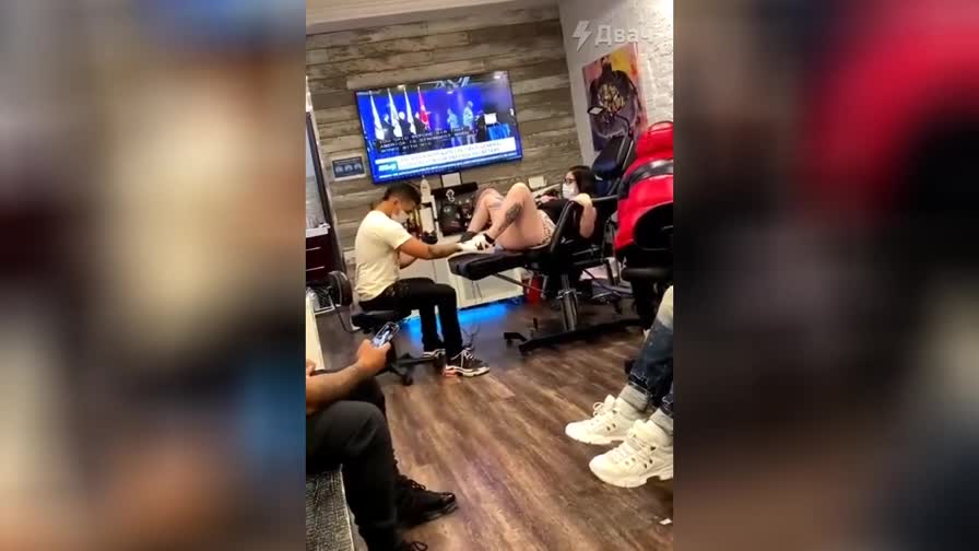 Мастер делал девушке тату в самом интимном месте. Видимо, она так перевозбудилась, что в какой-то момент не выдержала и кончила. И не просто кончила, а кончила со сквиртом. Прямо на мастера. Посетители тату салона офигели от такого представления.