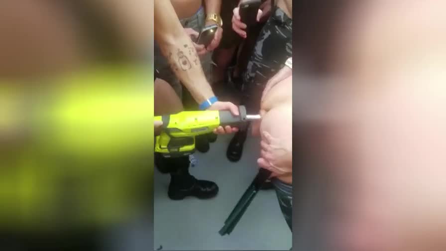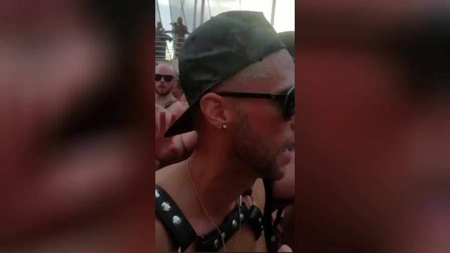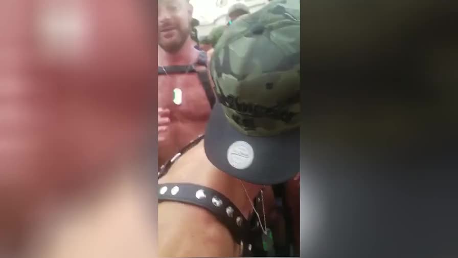 Настоящий трешняк творится в Европе во время гей-парада. Один гей засунул другому в жопу перфоратор с дилдо, включил его и начал долбить перед всеми участниками.