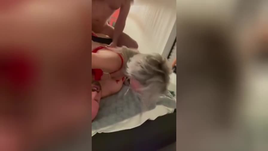 Трое мужиков оформляют одну русскую бабу во все три ее щели. Баба орет, получая дикий оргазм.