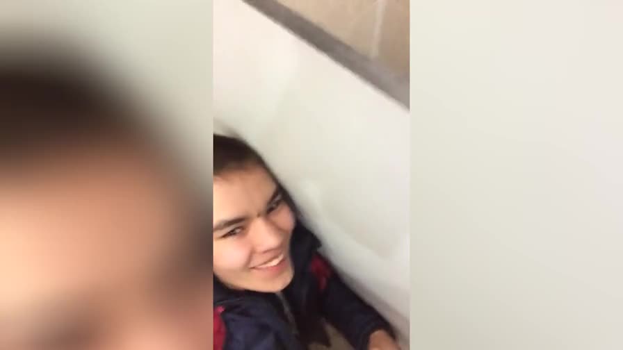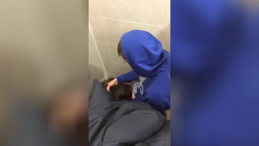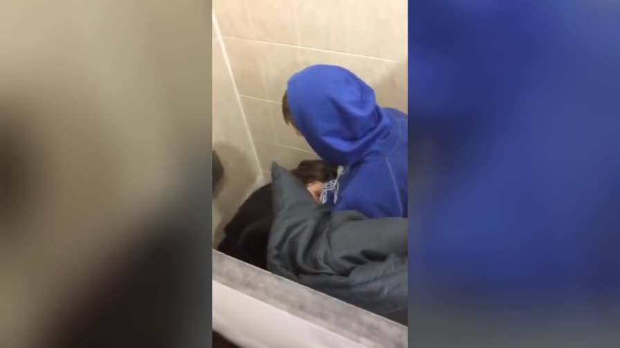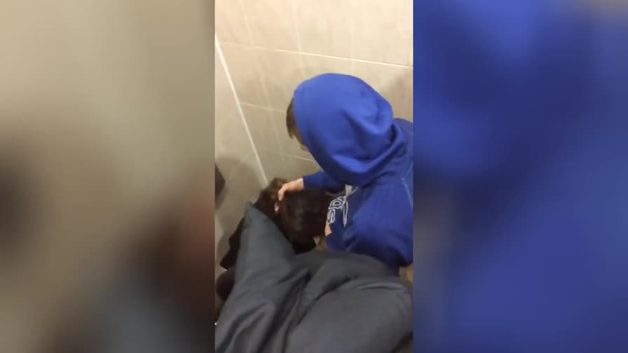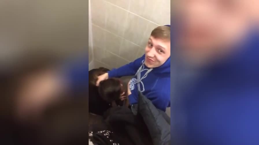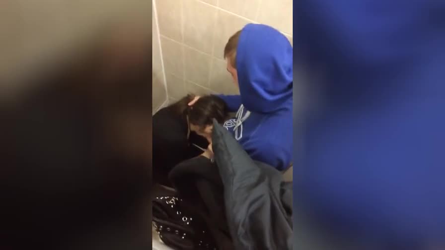 Парень уломал школьницу отсосать ему прямо в туалете школы. Девочка согласилась. Но за дверью стоял одноклассник, который снимал процесс минета, подняв телефон над стенкой кабинки туалета.