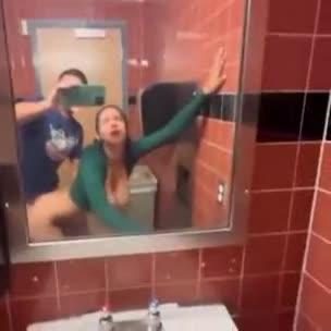 Парочка уединилась в туалете ночного клуба и принялась трахаться. Их даже не смутило то, что в любой момент в туалет мог кто-то зайти. Довольная девушка вернулась на танцпол со спермой в киске.