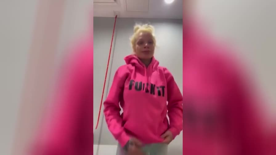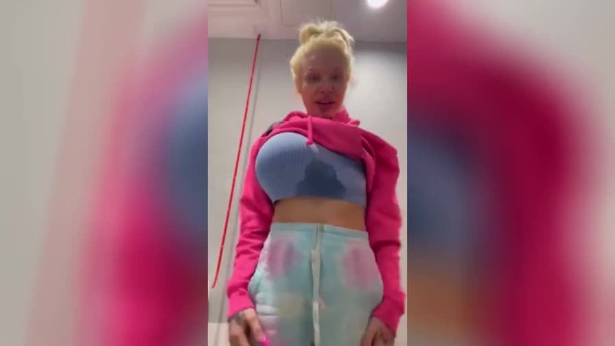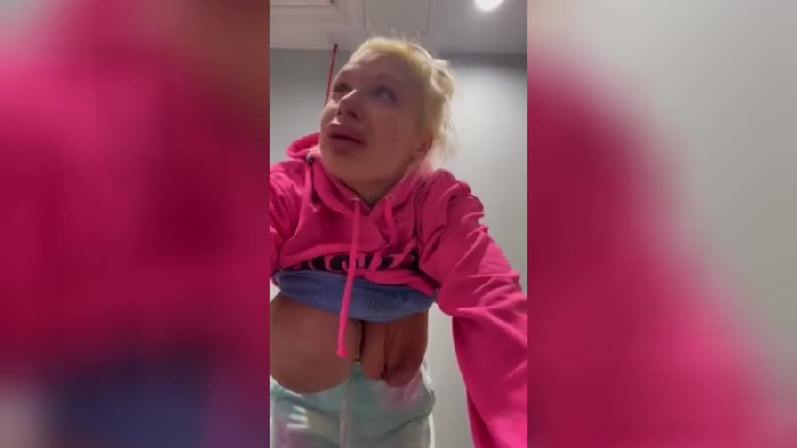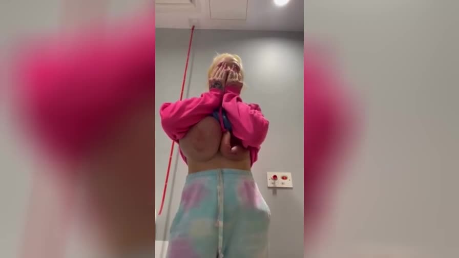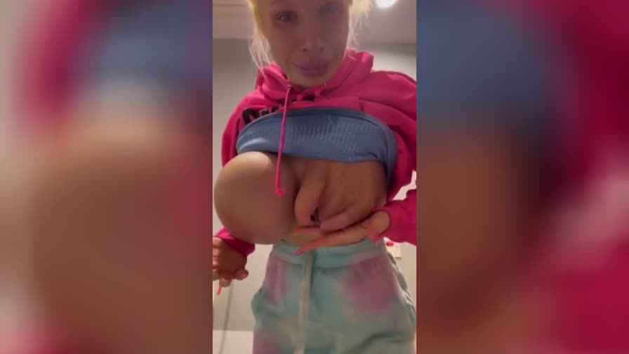 Настоящая жесть случилась у этой девушки. В груди лопнул имплант и порвалась силиконовая сиська. Она демонстрирует дырку в груди.