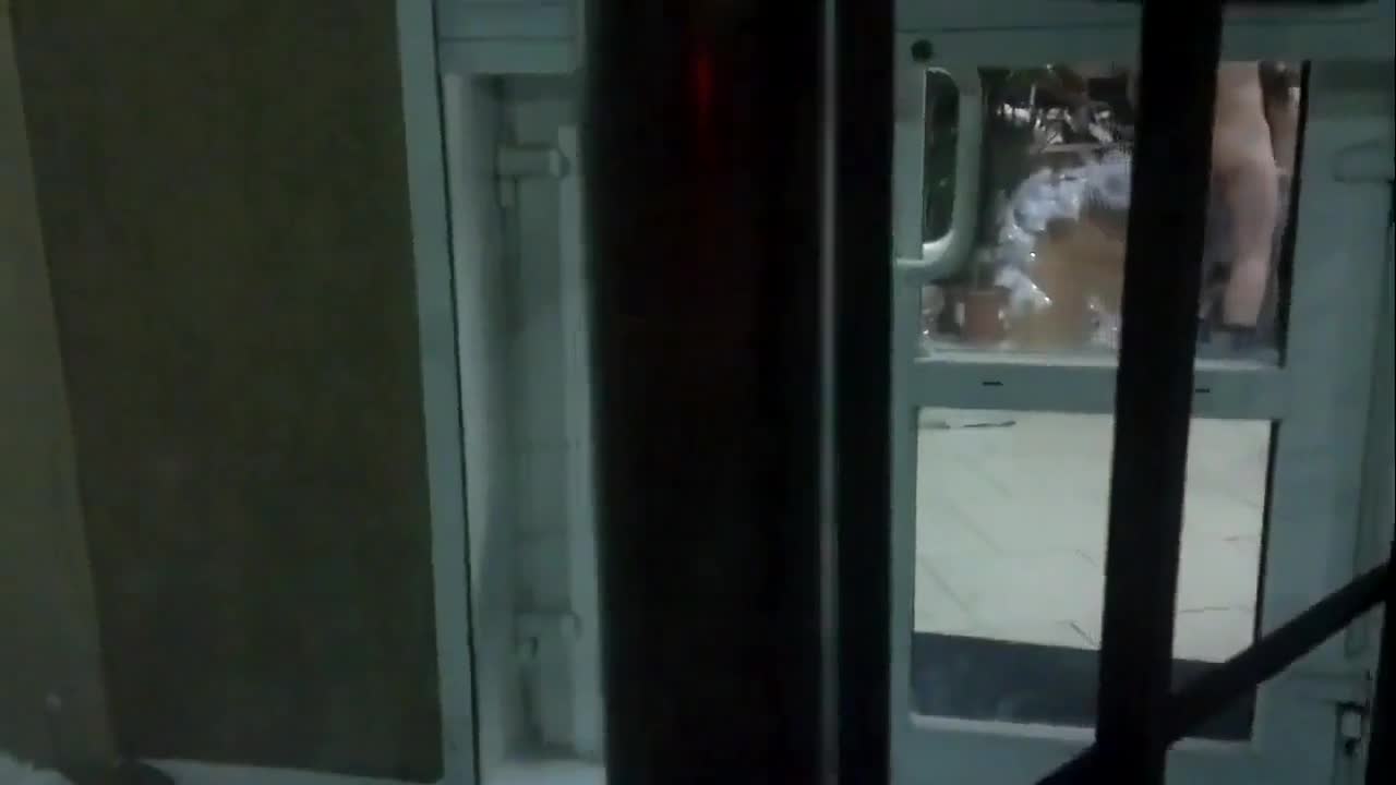Чувак через стеклянную дверь случайно увидел, как два чела трахают сучку в магазине. И решил это снять.
