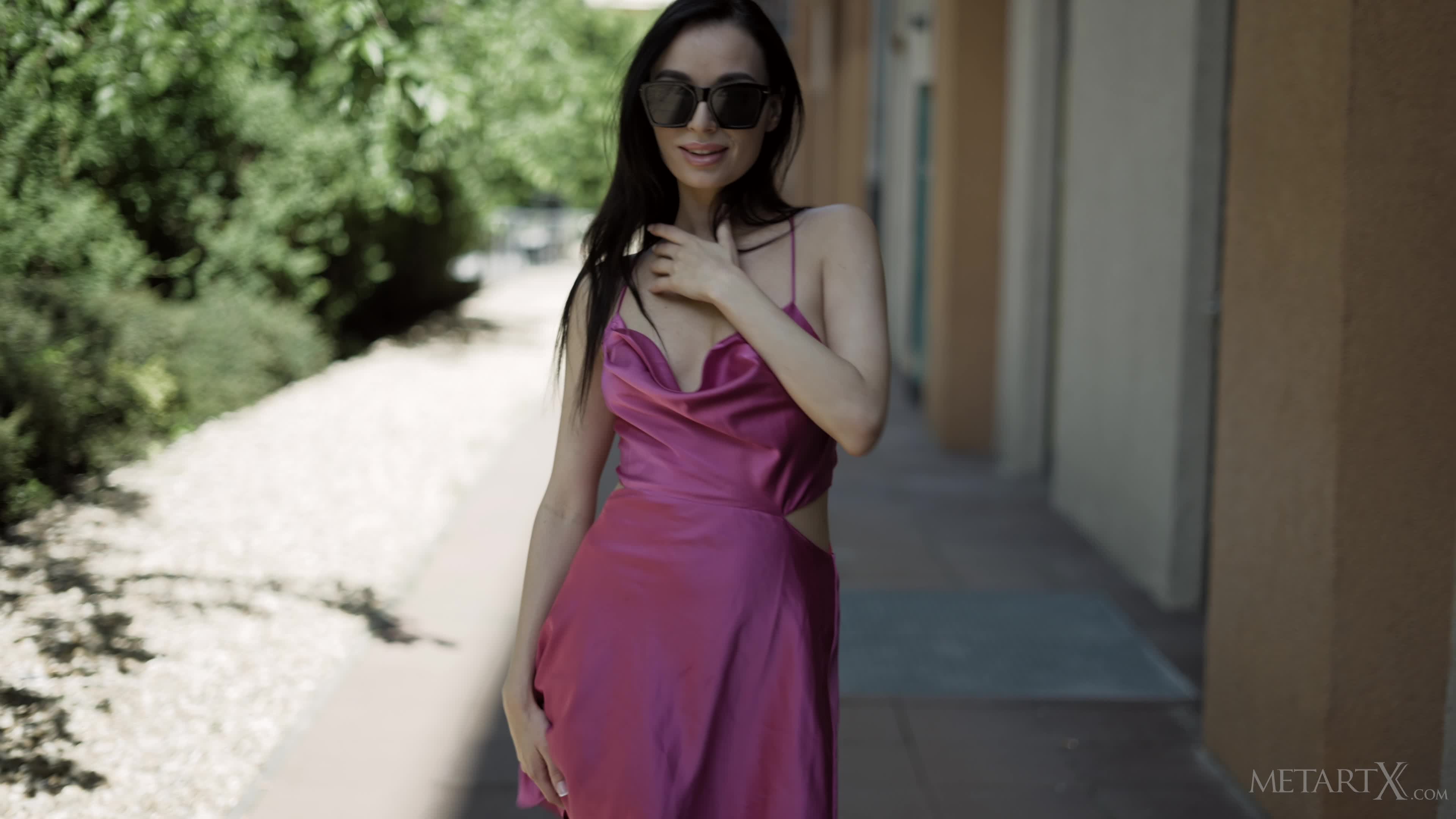 Еще на улице эта девушка начала показывать свое игривое настроение. Придя в помещение, она начала пританцовывать и показывать что-то вроде стриптиза. Постепенно возбуждение наросло и она не заметила, как оказалась голой и мастурбирующей на диване.