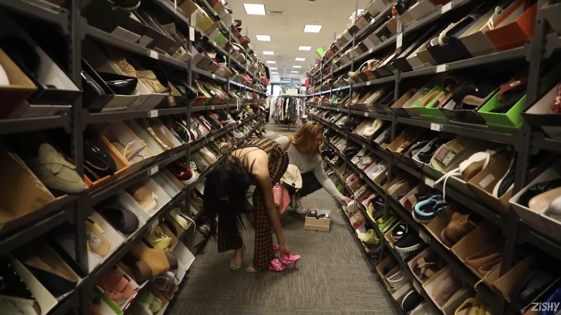 Эта девушка возбуждается, показывая свои интимные части тела в публичных местах. На этот раз она пришла в обувной магазин, чтобы показать свою грудь.