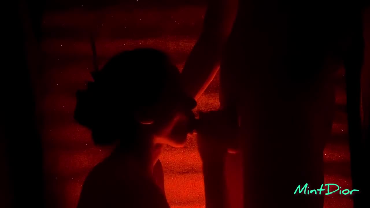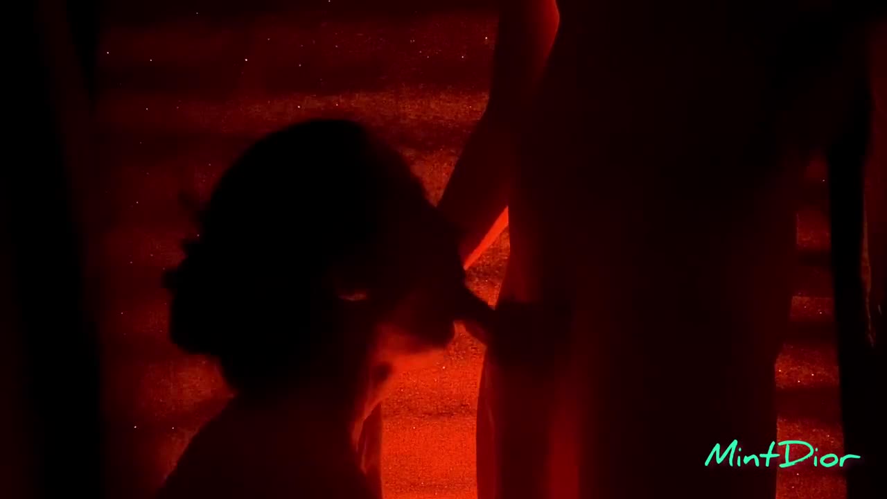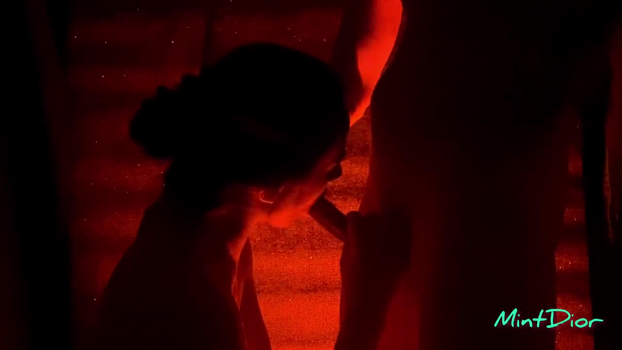 Возможно, девушка стеснялась. Поэтому пара выключила свет и оставила только тусклую красную подсветку. Только после этого девушка согласилась пососать.