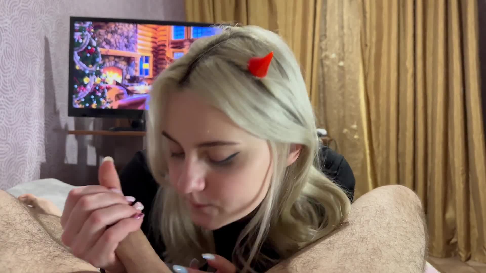 Вот такой подарок устроила девушка своему парню. А что, неплохо ведь. И семейный бюджет сохранила, и приятное сделала. Минет — отличный подарок но Новый год!