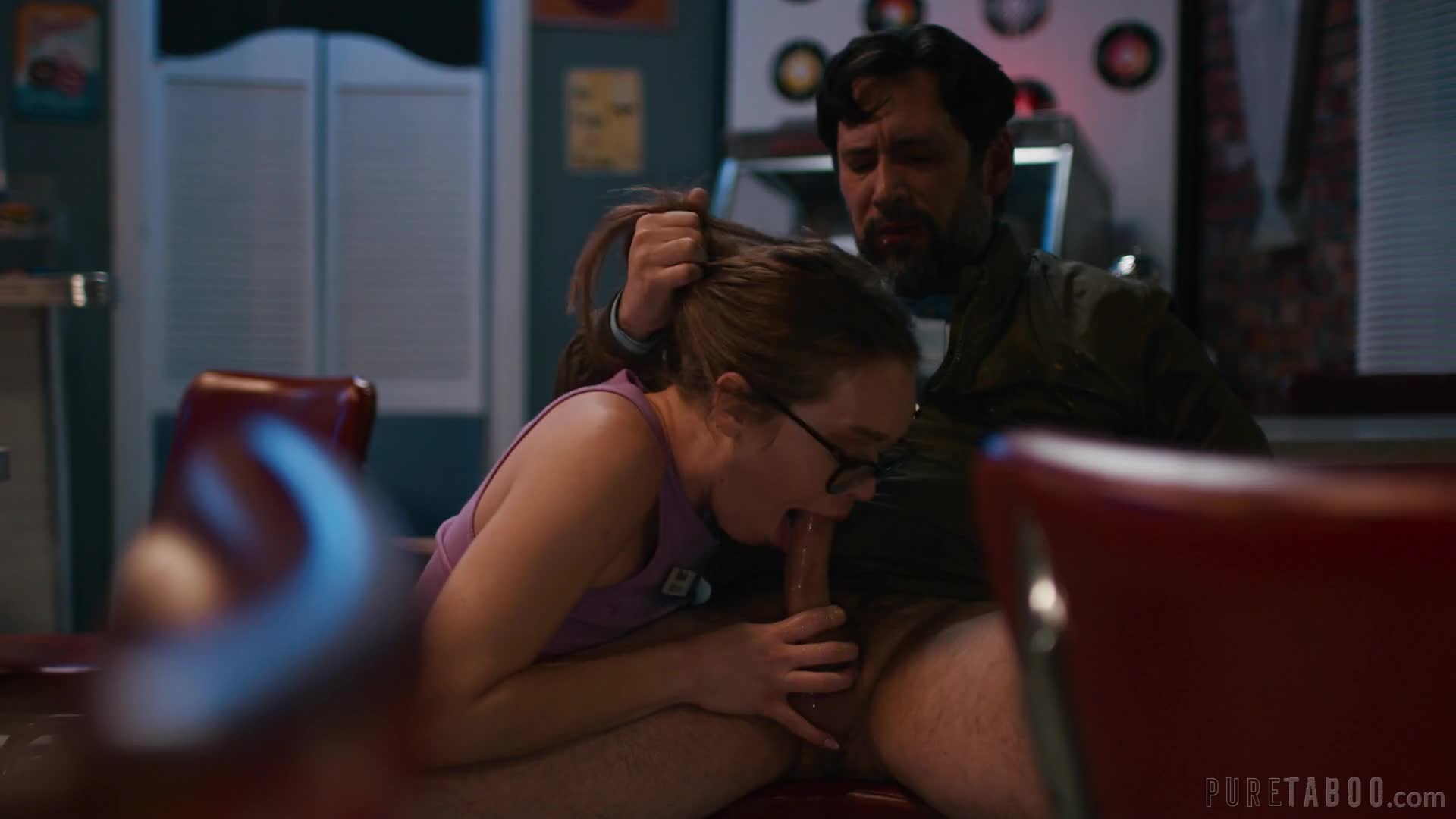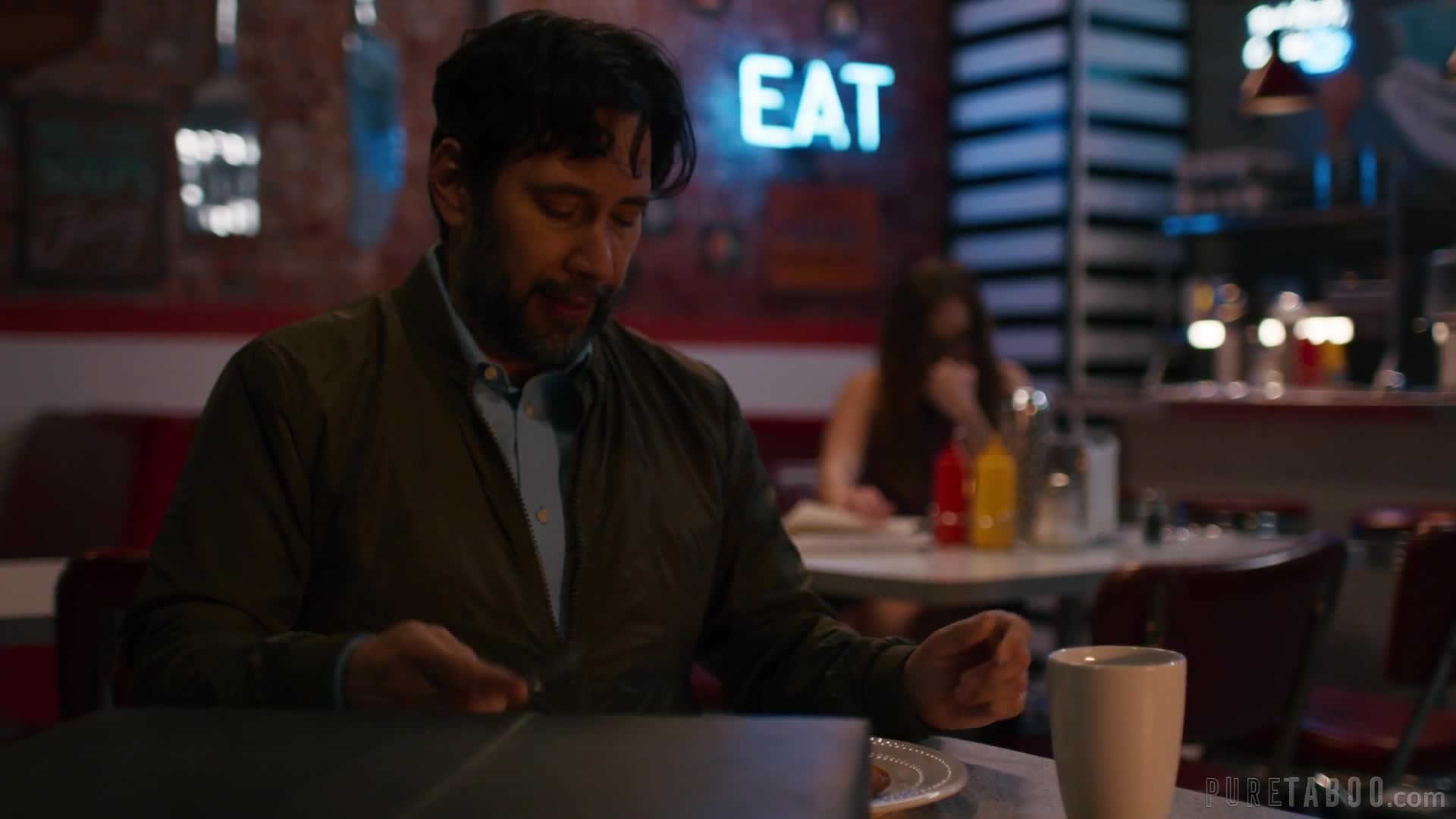 Порно с интересным сюжетом и русской озвучкой. Хозяйка кафе в подавленном состоянии, семейный бизнес идет совсем плохо. Она разговорилась со случайным посетителем, который в итоге ее жестко трахнул.