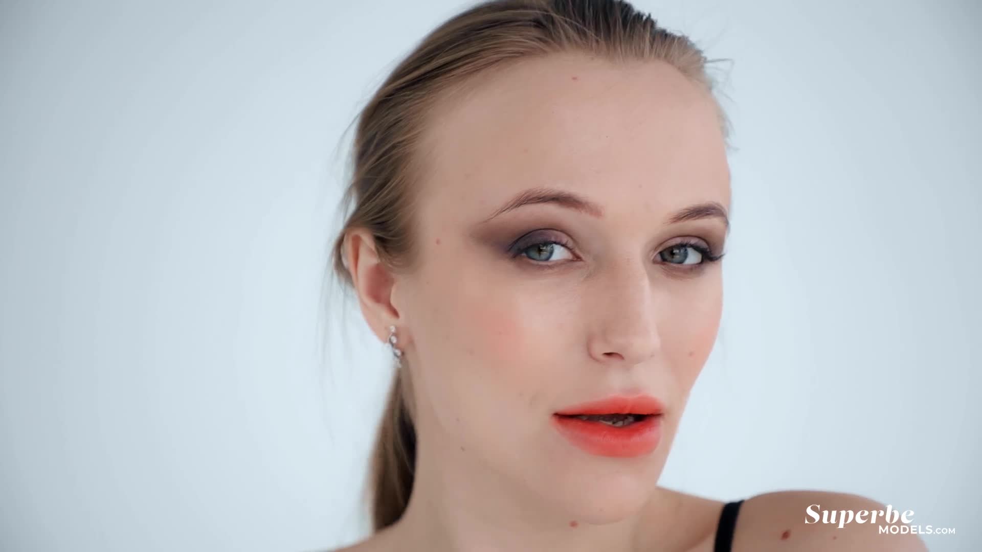 Модель Aislin разделась и попозировала голой на камеру на белом фоне. Эффектные кадры с лежачей голой моделью на полу.