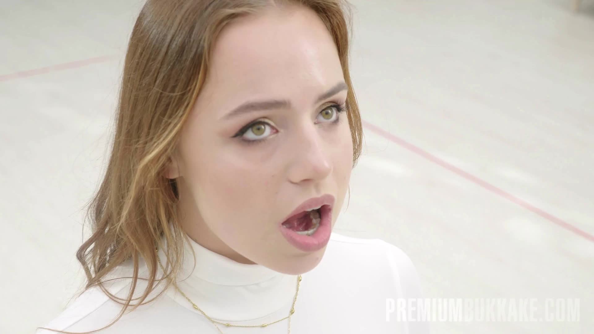 Девушка со спермой во рту на фотосессии