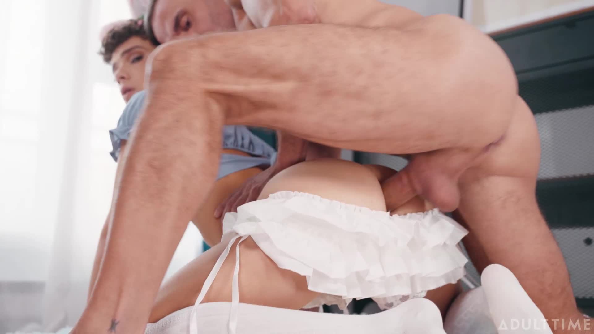 Мужик трахает в попку трансвестита, переодетого в зайчика