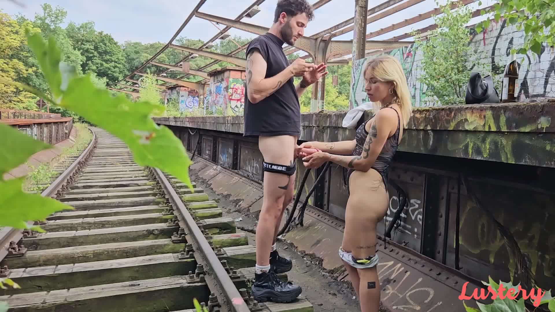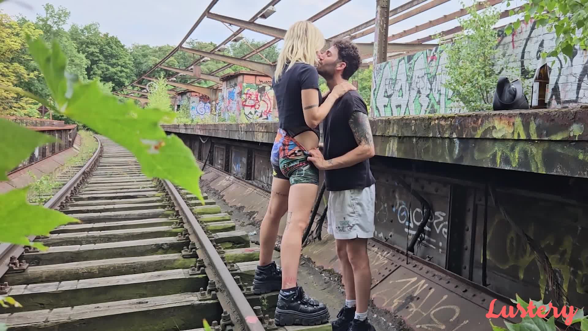 У парня и девушки была давняя фантазия. Они хотели потрахаться на заброшенной железной дороге. И снять видео. Ведь это очень интересное и оригинальное место, которое прибавляет много колорита к картинке. Они выбрали выходной и отправились на заброшку. По приезду они начали заниматься сексом, надеясь, что на путях внезапно не окажется поезд. Все обошлось.