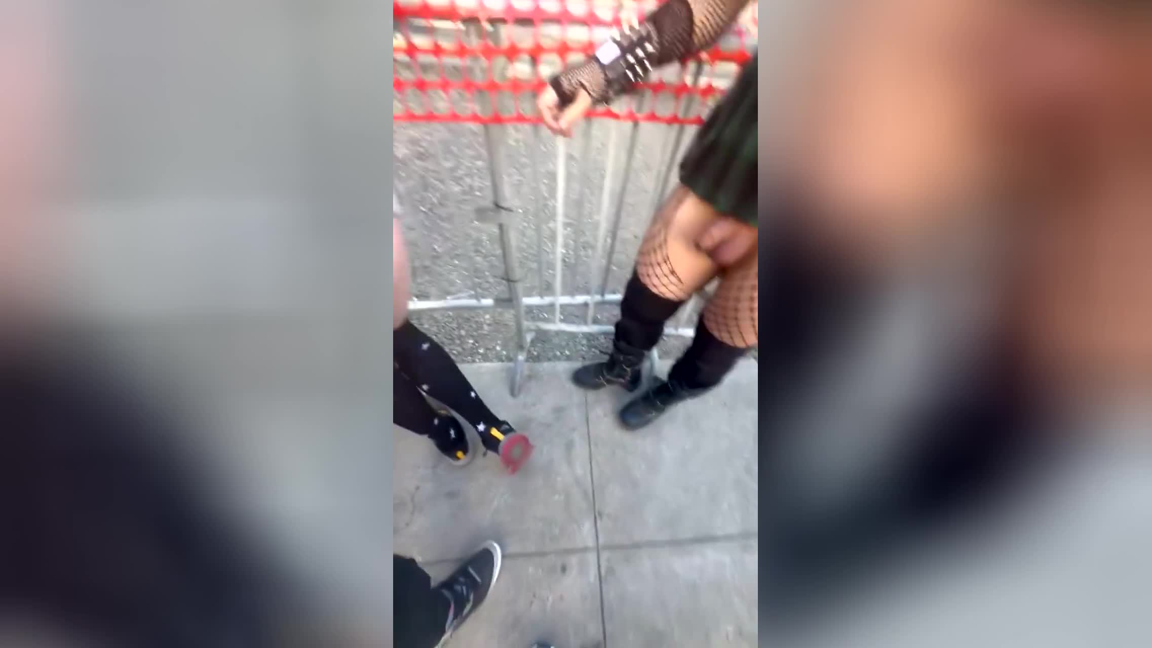 Очень странное видео. Лично мне не до конца понятно, что здесь происходит. Это похоже на какой-то парад меньшинств. Мужик засовывает пальцы в попку девушки и фистит ее прямо посреди улицы на глазах у толпы.