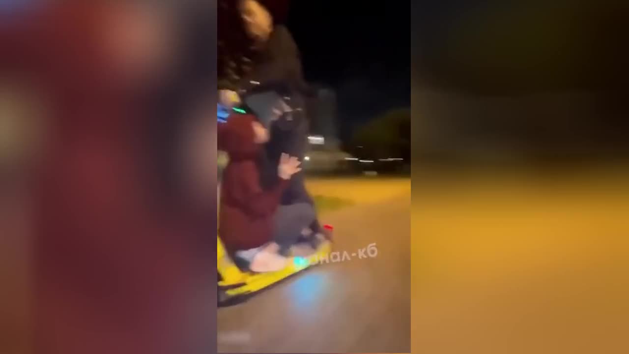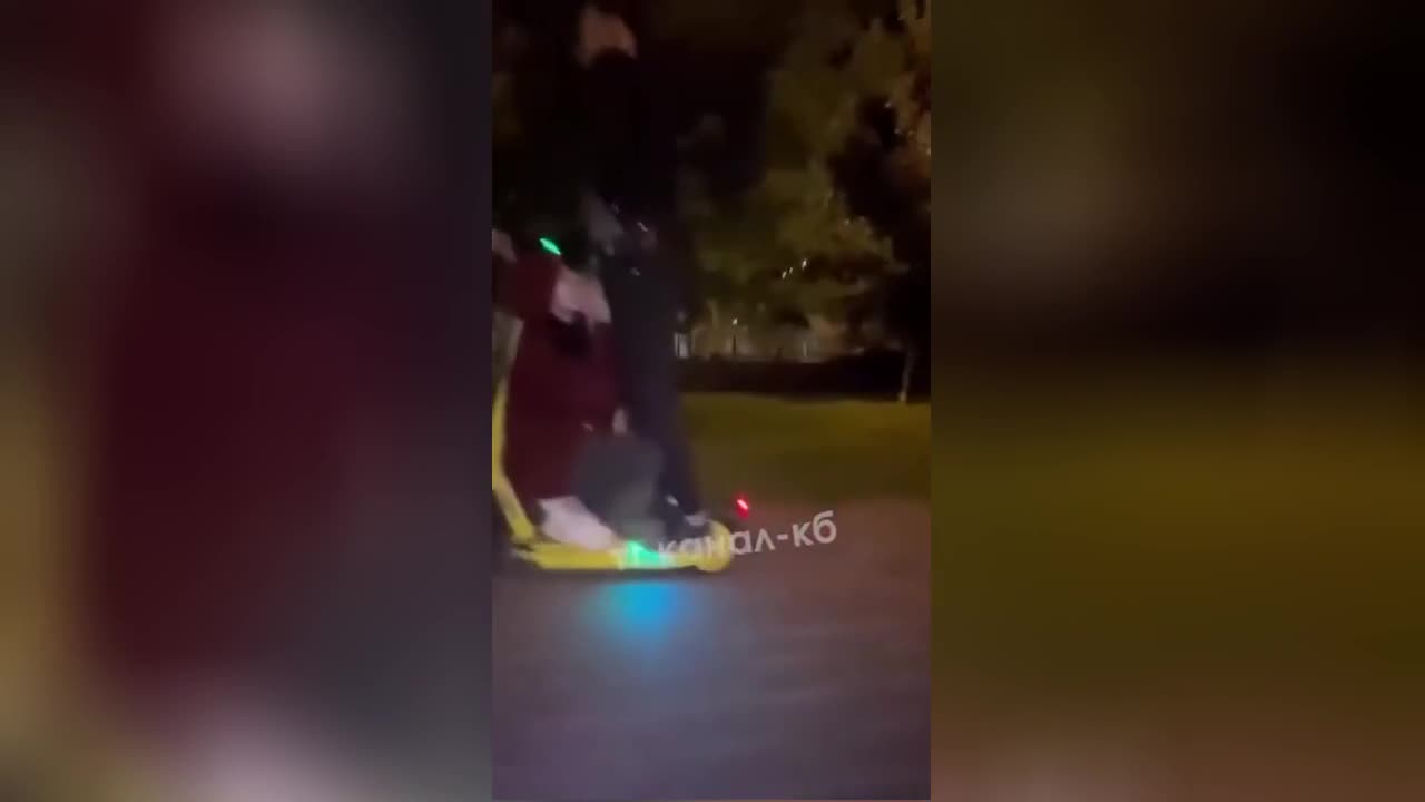 Интересно, кто додумался до такого экстрима? Парень с девушкой забрались на самокат, девушка вытащила член парня и начала делать ему минет, присев на корта. Все это происходит в движении на самокате.