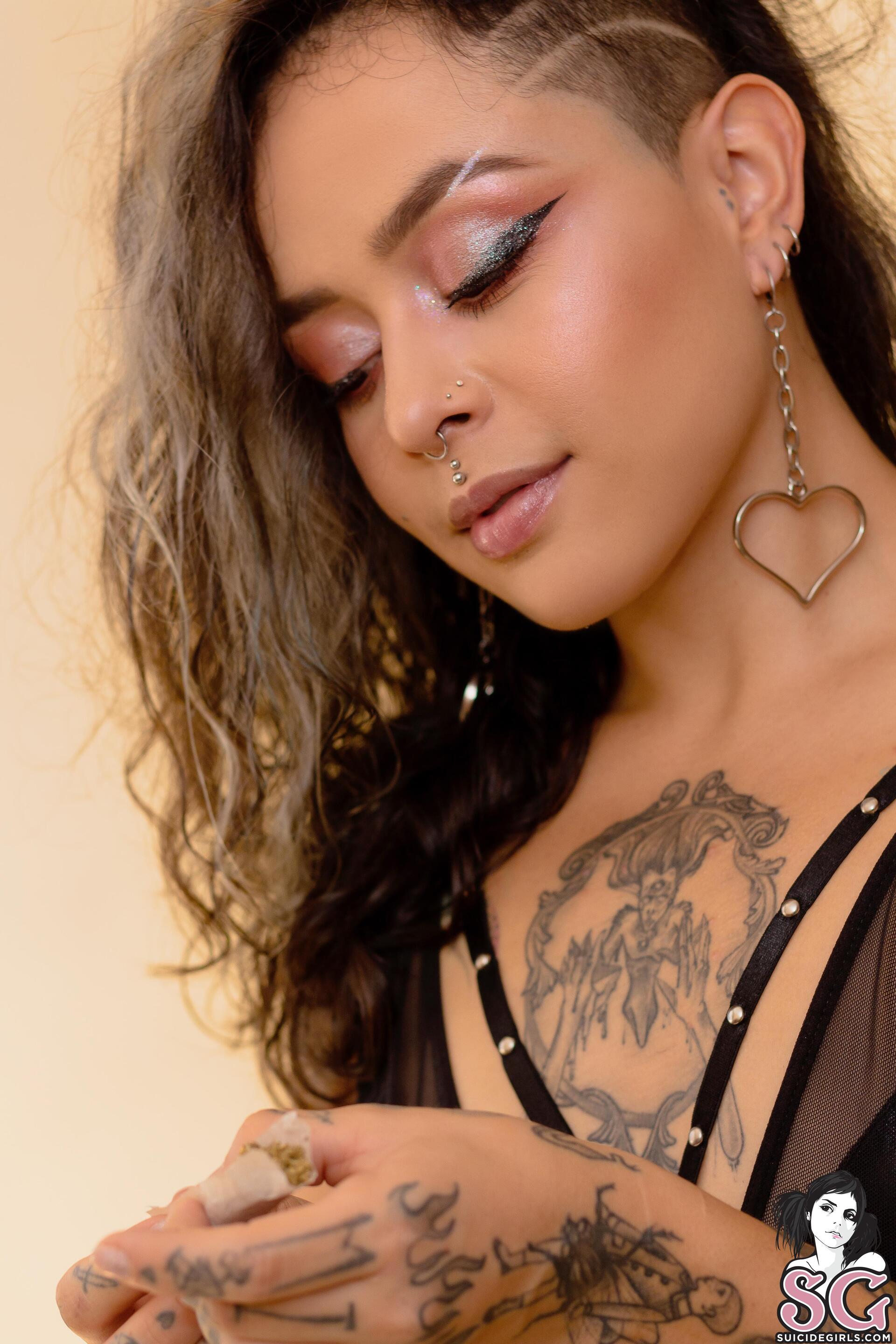 Девушка забила полный косяк бошек, раскурилась и устроила голую фотосессию.