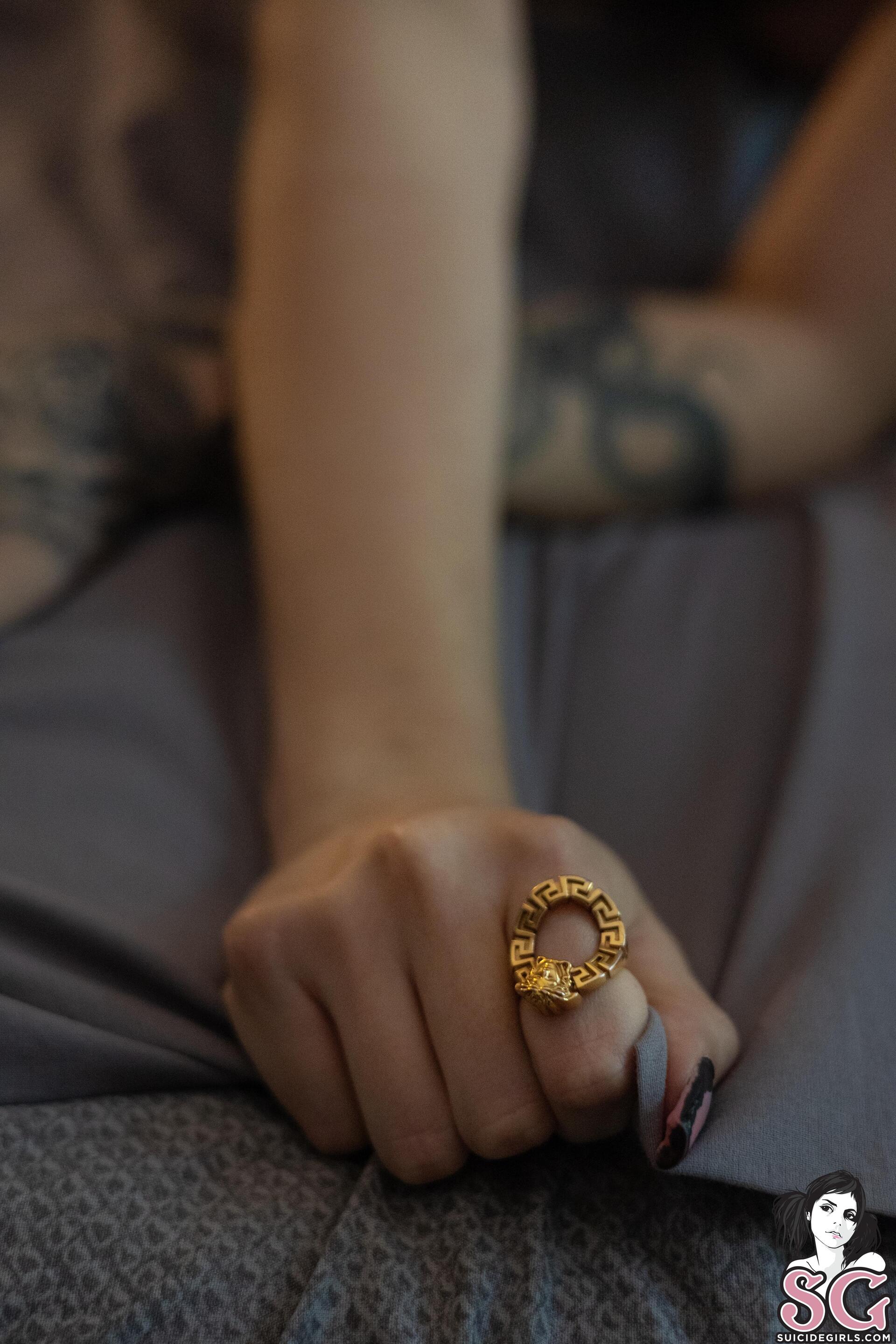 Блондинка надела сексуальный и очень откровенный костюм горничной и устроила фотосессию. В процессе съемки она оголила грудь.