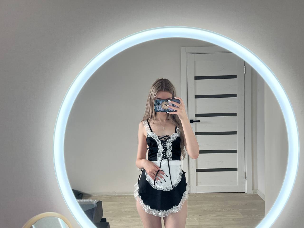 Скидывает фотографии для оценки фигуры, можно выбрать наряд, в каком будет обслуживать.